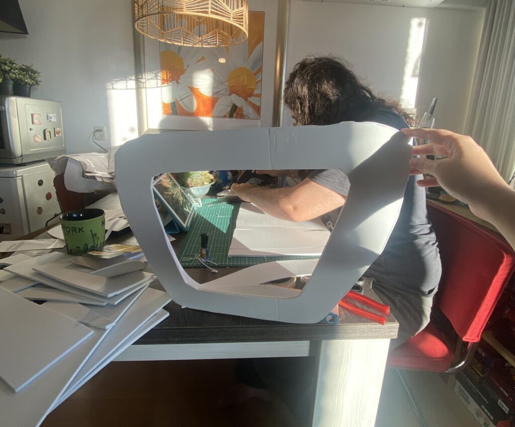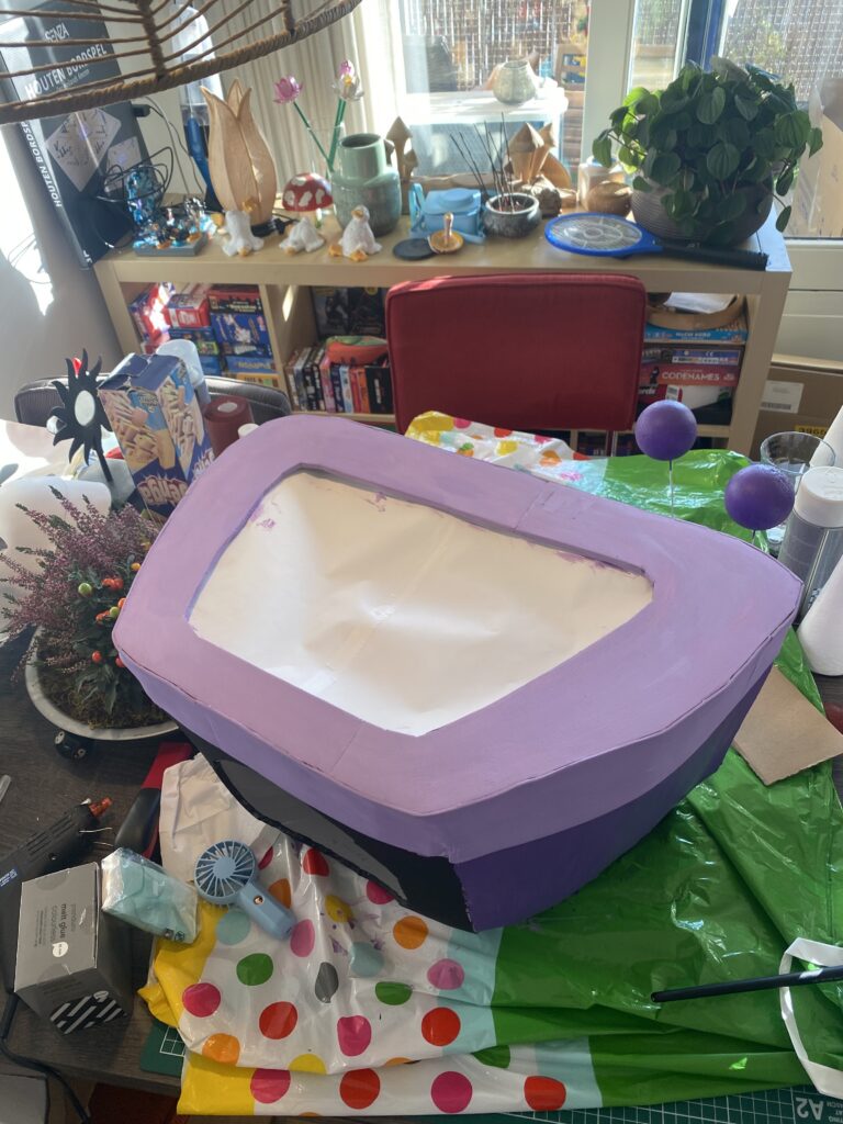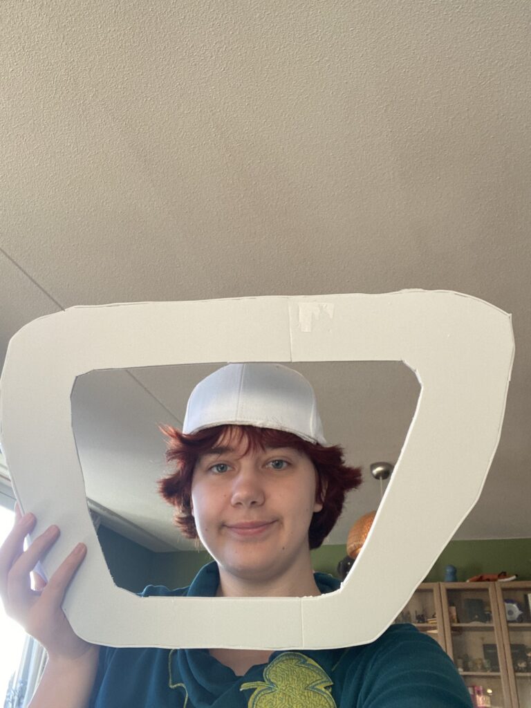 Ik heb gebruik gemaakt van een template die een andere cosplayer online heeft staan. Eerst maakte ik een kleinere versie van het hoofd uit karton, om te kijken hoe de template in elkaar stak en hoe ik deze het beste in elkaar kon zetten.