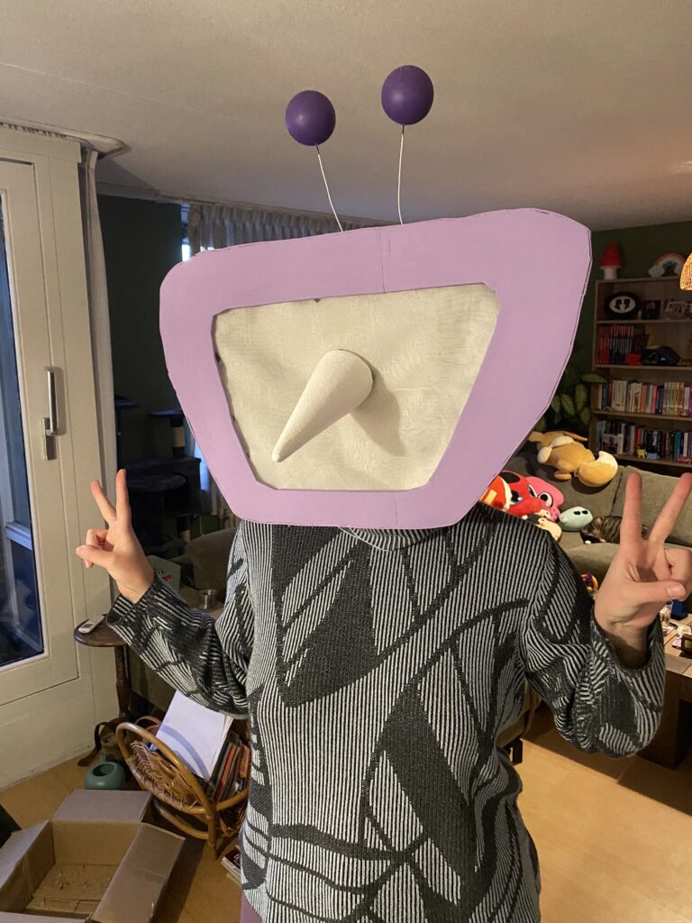 Tijdens Heroes Dutch Comic Con Winter 2025 ging ik verkleed als Mr. Ant Tenna van de game Deltarune. Voor deze cosplay heb ik met hulp van mijn vriend een tv-hoofd van foam gemaakt.