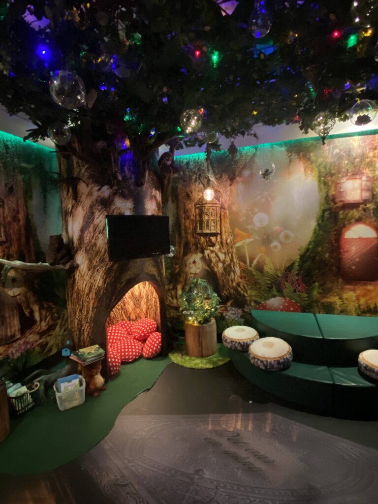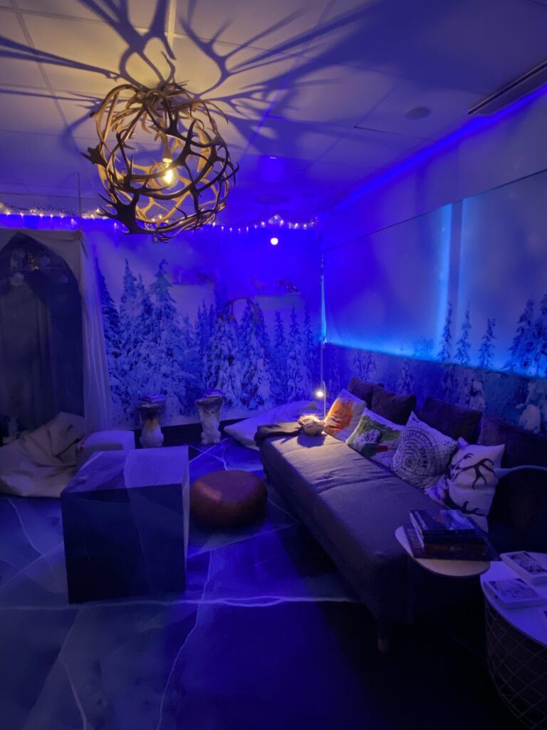 Tijdens ons gesprek liet Susan mij foto’s zien van een bibliotheek in Zweden met vier verschillende thema kamers, die leuk en fantasierijk zijn aangekleed.
